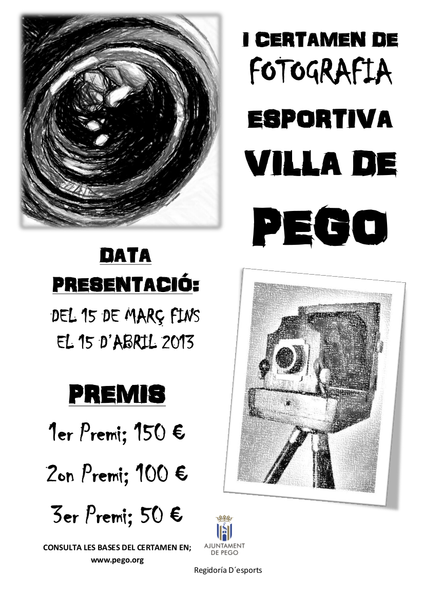 La Regidoria d’Esports de Pego, convoca el I Concurs de Fotografia Esportiva Villa de Pego per a donar a conèixer l’esport des d’una perspectiva diferent. Al nostre poble tenim futbol, bàsket, natació, atletisme, pilota, volei, escalada, … és a dir una grandissima varietat i hem de promocionar-ho, per tant des de l’Ajuntament, us proposem el binomi fotografia-esport a tots els interessats de la nostra comarca.