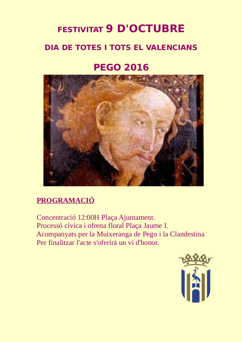 El proper dia 9 d’octubre se celebrarà el dia de tots i totes les valencianes i per això us deixem totes les activitats que hem preparat per a tots els pegolins. Us animem a participar.