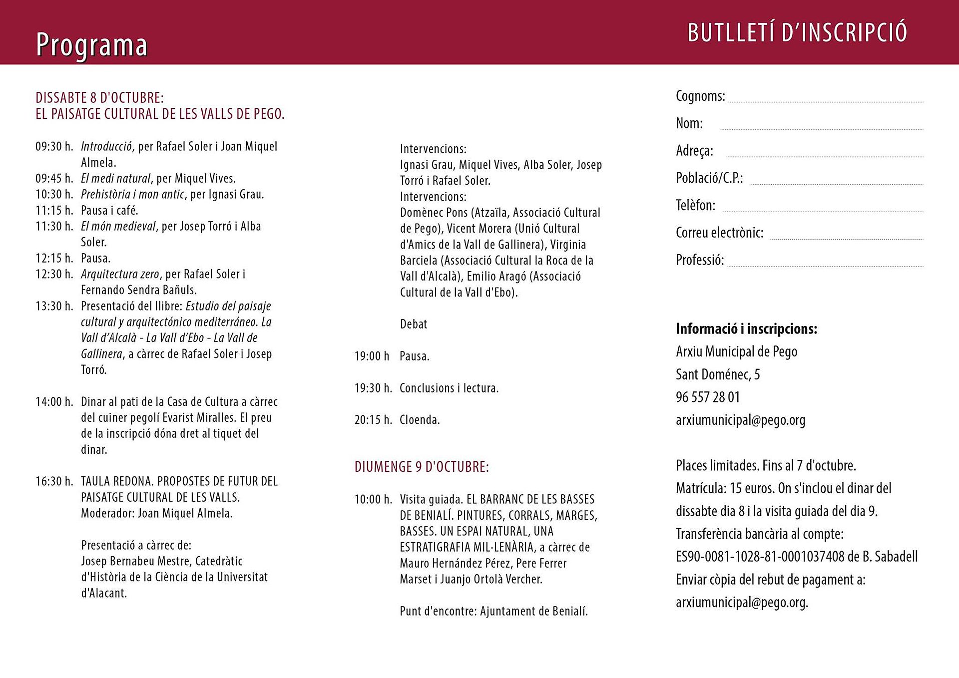 El proper dissabte i diumenge se celebraran les jornades sobre el paissatge cultural de les valls de Pego. A continuació podeu consultar el programa de les jornades i la informacio relativa al procés d’inscripció.