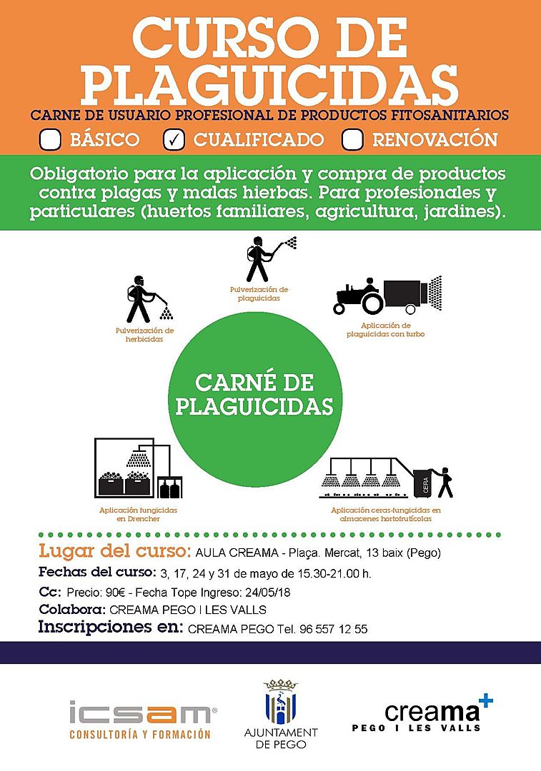 El Creama de Pego organitza un curs de manipulador de plaguicides de nivell qualificat, entre les dates del 03/05/2018 i el 31/05/2018.