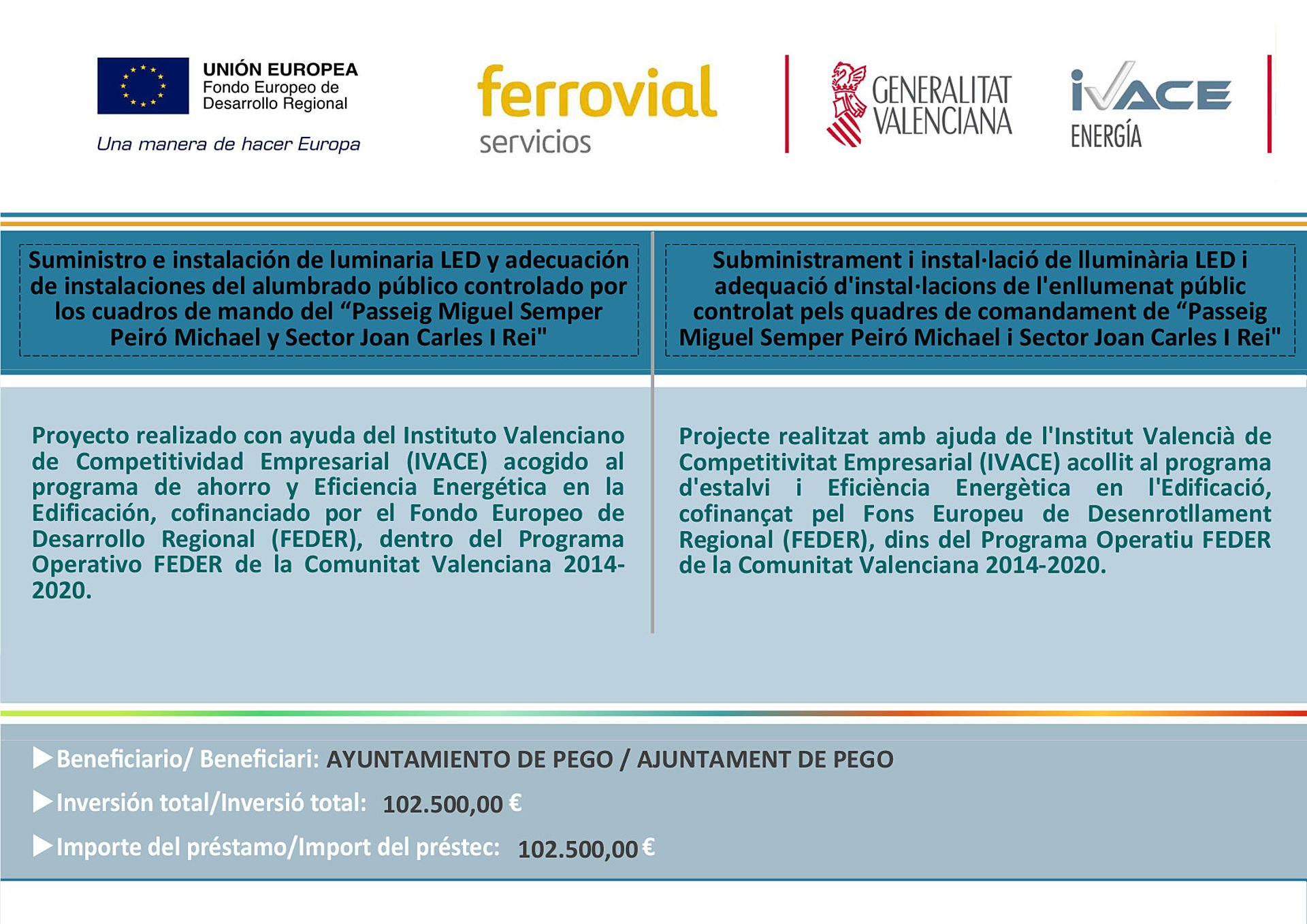 Projecte realitzat amb ajuda de l’Institut Valencià de Competitivitat Empresarial (IVACE) acollit al programa d’estalvi i Eficiència Energètica en l’Edificació, cofinançat pel Fons Europeu de Desenrotllament Regional (FEDER), dins del Programa Operatiu FEDER de la Comunitat Valenciana 2014-2020.