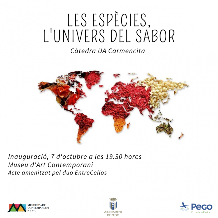 Pego entra al mes d’octubre amb molt de sabor. El divendres 7, a les 19.30 hores inaugura a la Casa de Cultura (carrer Sant Domenech 5) l’exposició ‘Espècies: L’univers del sabor’, organitzada per la Càtedra Carmencita d’Estudis del Sabor Gastronòmic de la Universitat d’Alacant. Es mostrarà com les herbes culinàries i les espècies han tingut gran poder a l’hora d’influir en la història del món, ja que a més d’aportar caràcter i personalitat a la gastronomia, han servit com a moneda de canvi, impulsant la conquesta de territoris, provocant guerres i transformant els hàbits socials.