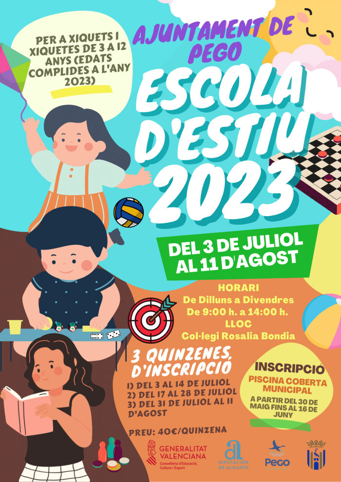 L’Ajuntament de Pego posa en marxa una nova edició de ‘l’Escola d’Estiu’, un servei, organitzat pel departament d’Esports, amb el qual atendre durant el mes de juliol i la primera quinzena d’agost als xiquets i xiquetes, i facilitar així la conciliació familiar per a aquells pares i mares que treballen durant els mesos d’estiu.