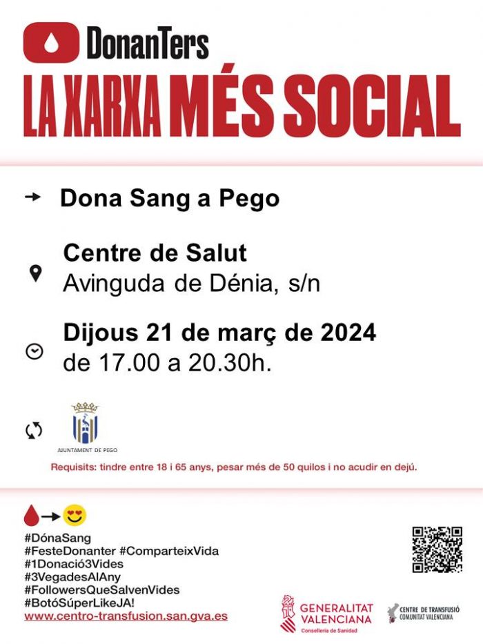 La pròxima cita solidària serà el dijous 21 de març de 17 a 20.30 hores, al Centre de Salut. Cal remarcar que per a donar sang cal tindre entre 18 i 65 anys, pesar més de 50 quilos i no acudir en dejú.