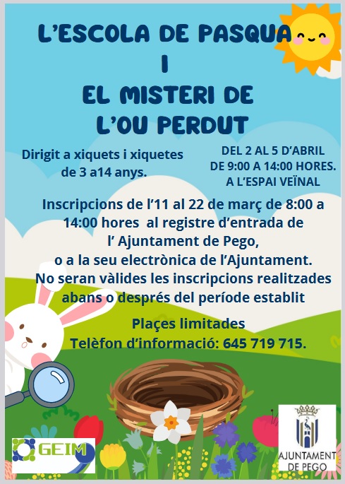 Les inscripcions podran realitzar-se de l’11 al 22 de març des de les 8 del matí al 14 hores, de forma presencial, a l’Ajuntament de Pego o per la seu electrònica del web de l’Ajuntament de Pego.