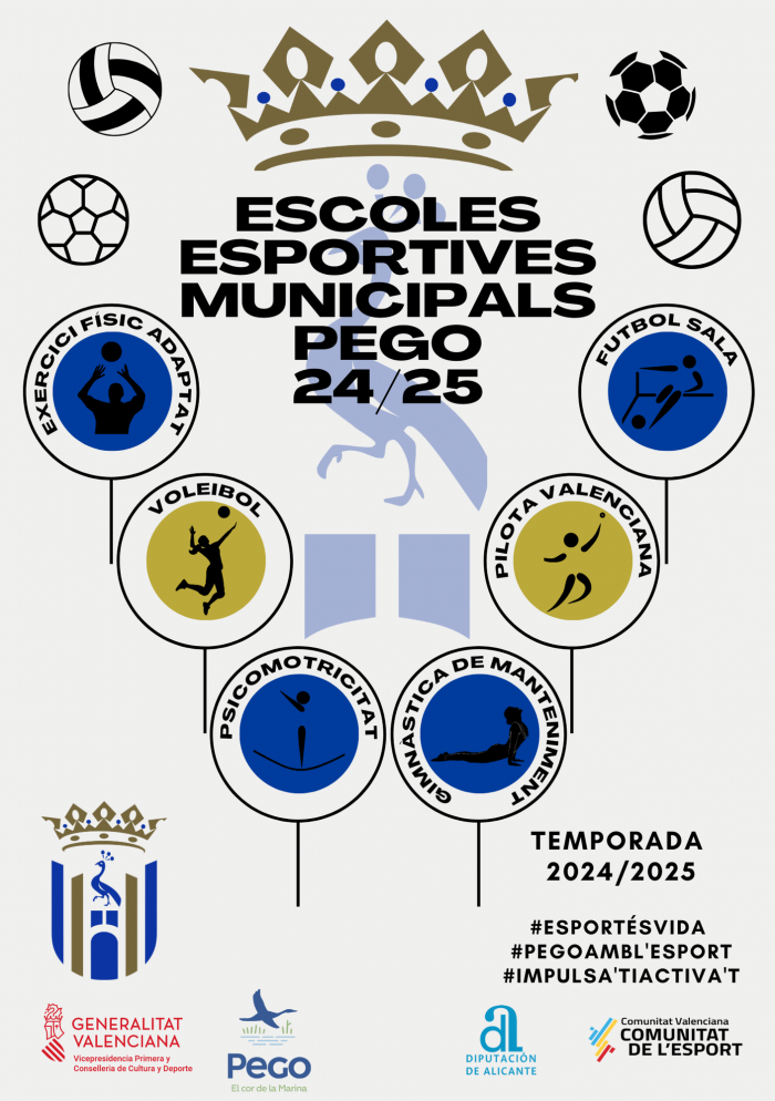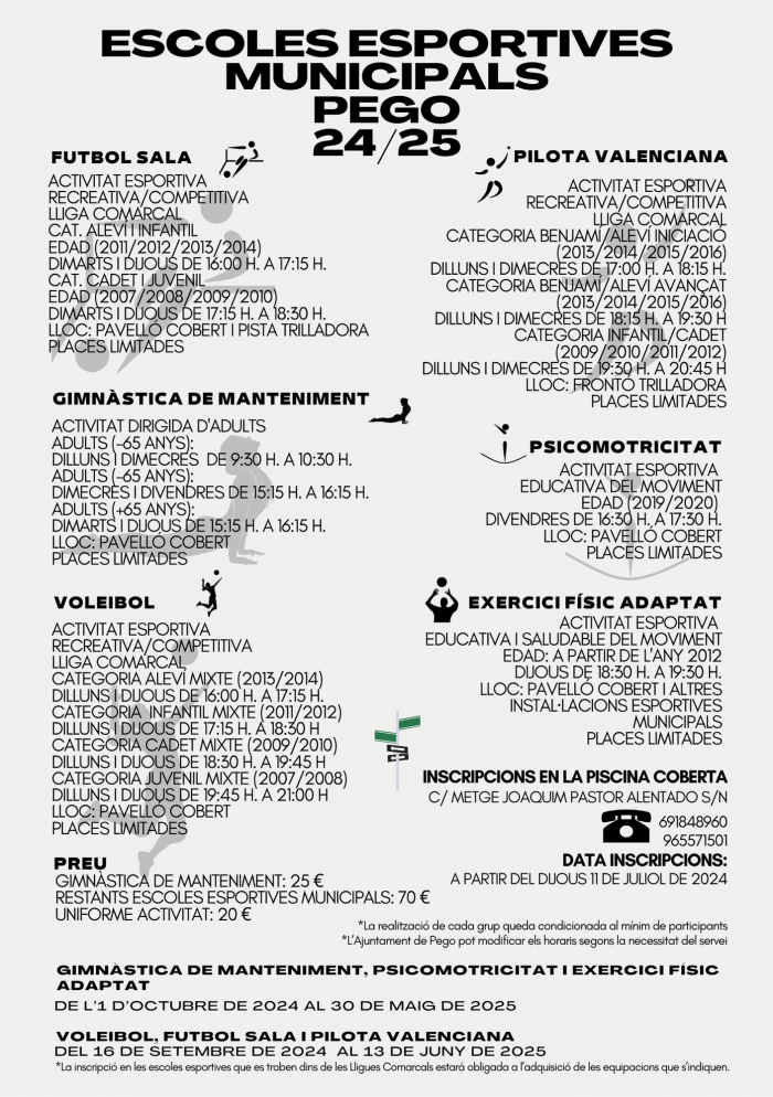 Els grups i horaris es troben al cartell anunciador de les Escoles Esportives Municipals de Pego per a la Temporada 24/25.