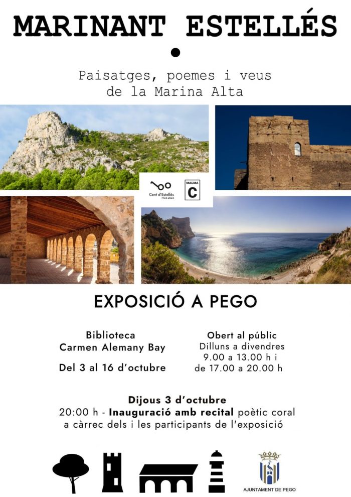 A més d’esta iniciativa, s’ha programat per a este dijous 3 d’octubre, a les 20 hores, la inauguració de l’exposició ‘Marinant Estellés’, una mostra dedicada al poeta valencià Vicent Andrés Estellés amb imatges de la comarca que estaran acompanyades de poemes de l’autor i musicats amb les veus de personalitats de la Marina Alta. La mostra podrà visitar-se fins al 16 d’octubre en horari d’atenció al públic, de 9 a 13 hores i de 17 a 20 hores.