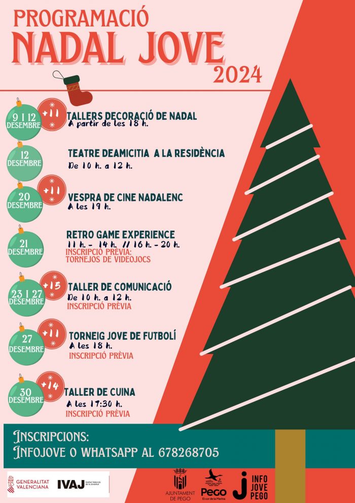 Si bé la Retro Game Experience és, problablement, l’activitat més emblemática dels nadals juvenils del municipi, no poden faltar altres activitats ja consolidades a Pego durante els darrers anys i que es desenvolupen durant el periode vacacional en les instal.lacions de l’Infojove. De manera que els primers tallers programats servirán per a preparar la decoració del centre juvenil si bé enguany els arbrets que es faran els usuaris també se’ls podran emportar. També torna a Pego un grup de joves voluntaris europeus de la mà de l’ONG DeAmicitia que han preparat un recull de breus representacions teatrals adreçades a la gent gran de la Residència de Sant Joan de Déu. No faltarà la projecció de pel.lícules nadalenques al CiJ, els tallers de cuina per a preparar crêpes i els tornejos de futbolí.