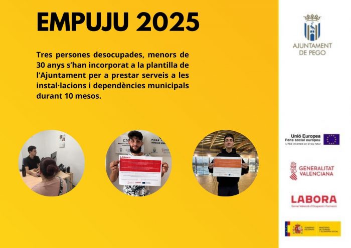 En aquest cas, la subvenció concedida és de 53.324,91 euros, com a part del Programa EMPUJU (Avalem Joves) que s’enfoca en la contractació de joves menors de 30 anys aturats beneficiàries de la Garantia Juvenil, per entitats locals de la Comunitat Valenciana, amb la finalitat que incrementen la seua ocupabilitat mitjançant l’adquisició d’experiència laboral. Les tres persones contractades exerciran funcions de Tècnic en Orientació Laboral, Socorrista i Peó de la Construcció.