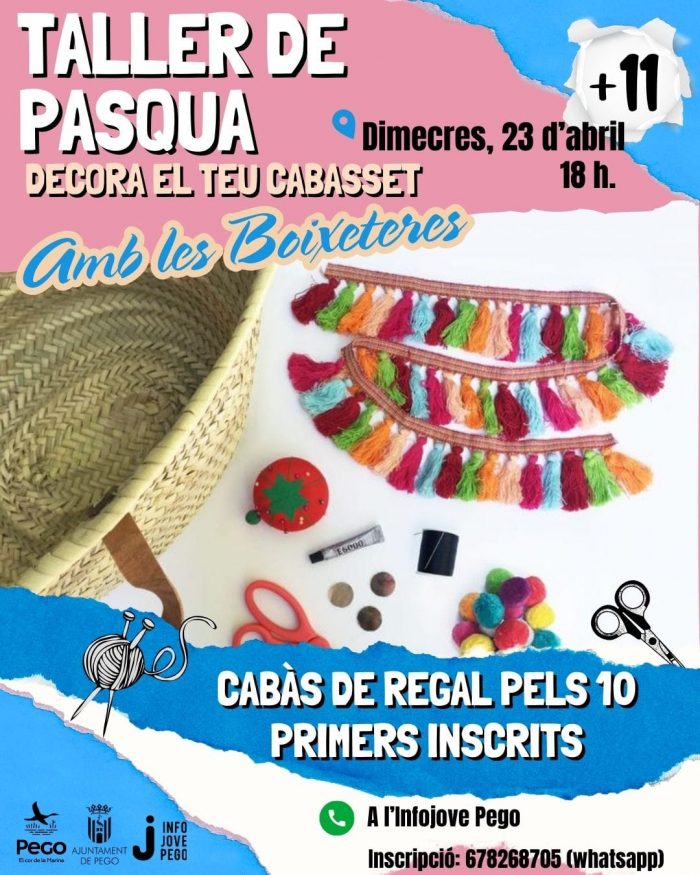 L’endemà, el 23 d’abril, de nou els i les jóvens tindran l’oportunitat de submergir-se en la tradició popular amb un taller de confecció de ‘cabassets’ en el qual comptaran amb la participació de les Boixeteres de Pego.