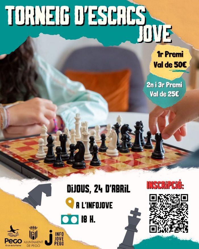 Finalment, el dia 24 d’abril se celebraran dos noves activitats. La primera d’elles, a partir de les 10 del matí, serà la ‘Ruta Pasquera’, una oportunitat per a conéixer els espais verds del municipi. Un recorregut pel terme municipal per a mantindre la tradició de prendre la mona de pasqua envoltats de naturalesa, tal com s’ha fet sempre a Pego. Ja a la vesprada, a partir de les 18 hores se celebrarà un torneig d’escacs en les dependències d’Infojove. Un torneig que requerix inscripció prèvia i que comptarà amb premis per al guanyador, el segon i tercer classificat.