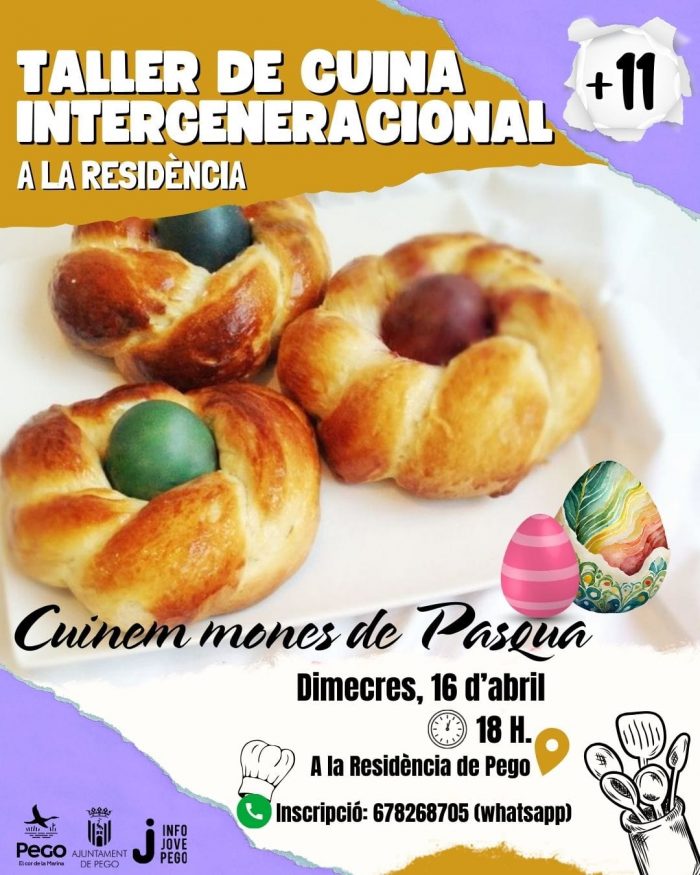 L’Escoleta de Pasqua no és l’única opció que tenen els i les jóvens del municipi per a divertir-se durant el període vacacional. Des del departament Joventut també s’han programat una sèrie d’activitats (dedicades a majors d’11 anys). El dimecres 16, a les 18 hores, tindrà lloc un taller intergeneracional. Els més jóvens se citaran amb els usuaris i les usuàries de la Residència Sant Joan de Déu per a confeccionar la típica ‘Mona de Pasqua’. “A més d’aprendre a confeccionar este producte tan típic d’estes festes, també és una oportunitat perquè generacions tan allunyades en el temps compartisquen unes hores de xarrada, en el qual uns aporten l’experiència i altres la vitalitat i ganes d’aprendre”, indica la regidor de Joventut, Paula Orihuel.