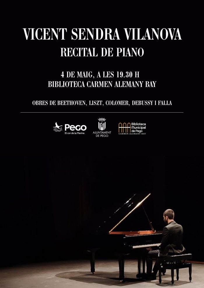 Pego arrancarà el mes de maig amb música clàssica de la mà de les millors peces de grans compositors interpretades pel pianista pegolí Vicent Sendra Vilanova. Serà en un concert previst per al dia 4 a partir de les 19.30 hores a la Biblioteca Carmen Alemany Bay.
