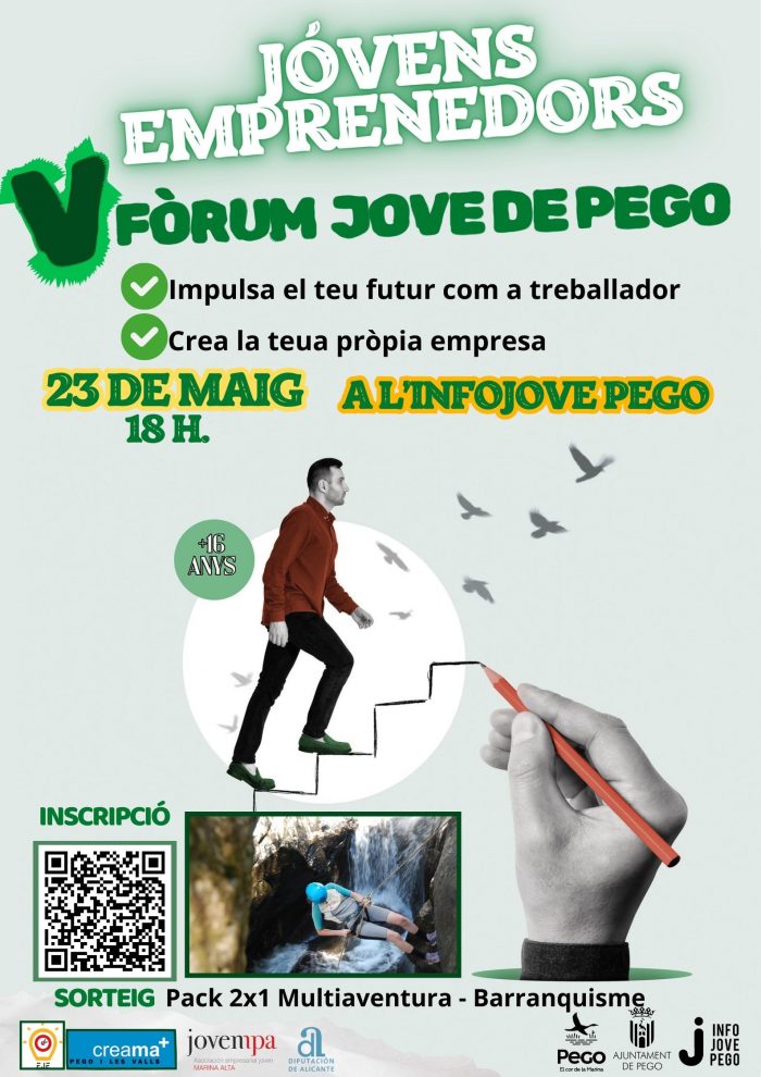 Aquest fòrum, que tindrà lloc a partir de les 18h a les instal·lacions de l’Infojove Pego, va adreçat especialment a joves a partir de 16 anys que volen millorar el seu perfil professional, explorar camins d’ocupació i emprendre projectes personals o empresarials. Sense límits d’edat, l’activitat està oberta a totes aquelles persones que vulguen conéixer millor com orientar-se dins del món laboral o com iniciar un projecte propi, especialment des de l’àmbit rural.