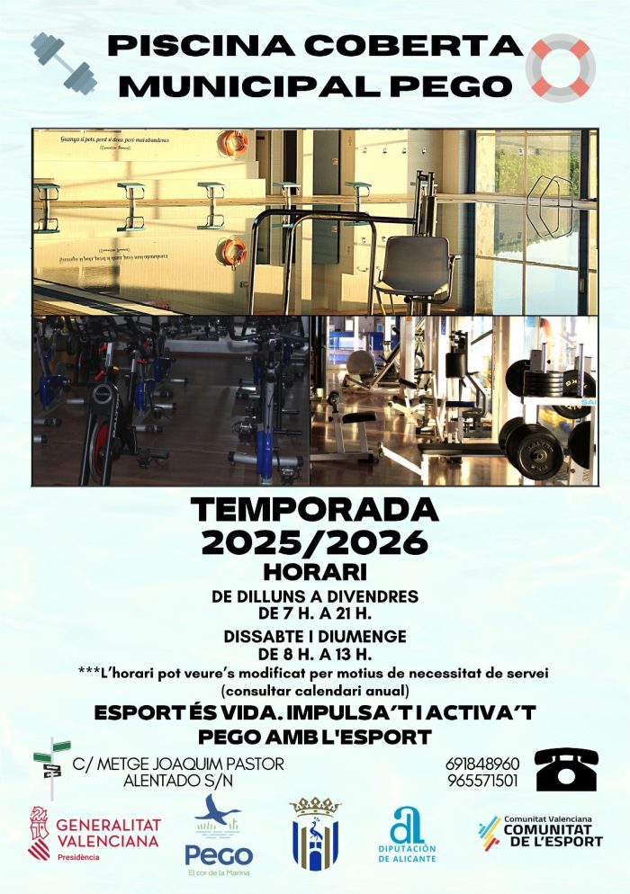 A partir de l’1 de setembre s’inicia una nova temporada esportiva. Obri les portes la piscina municipal coberta així com la seua zona de gimnàs. A més, es podran realitzar les inscripcions a les diferents Escoles Esportives Municipals.