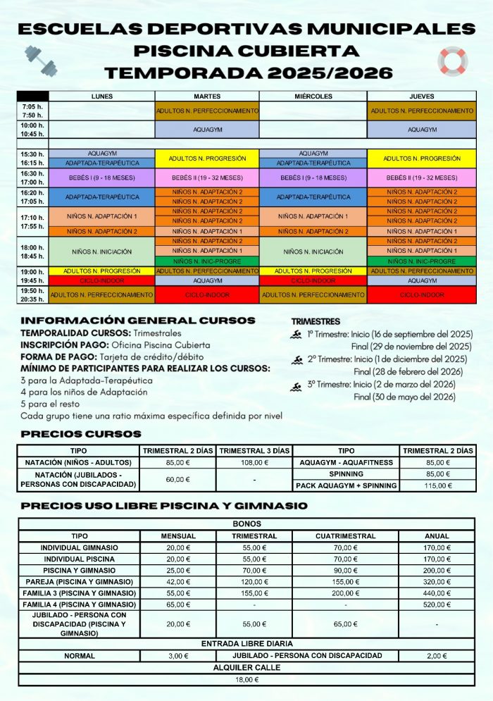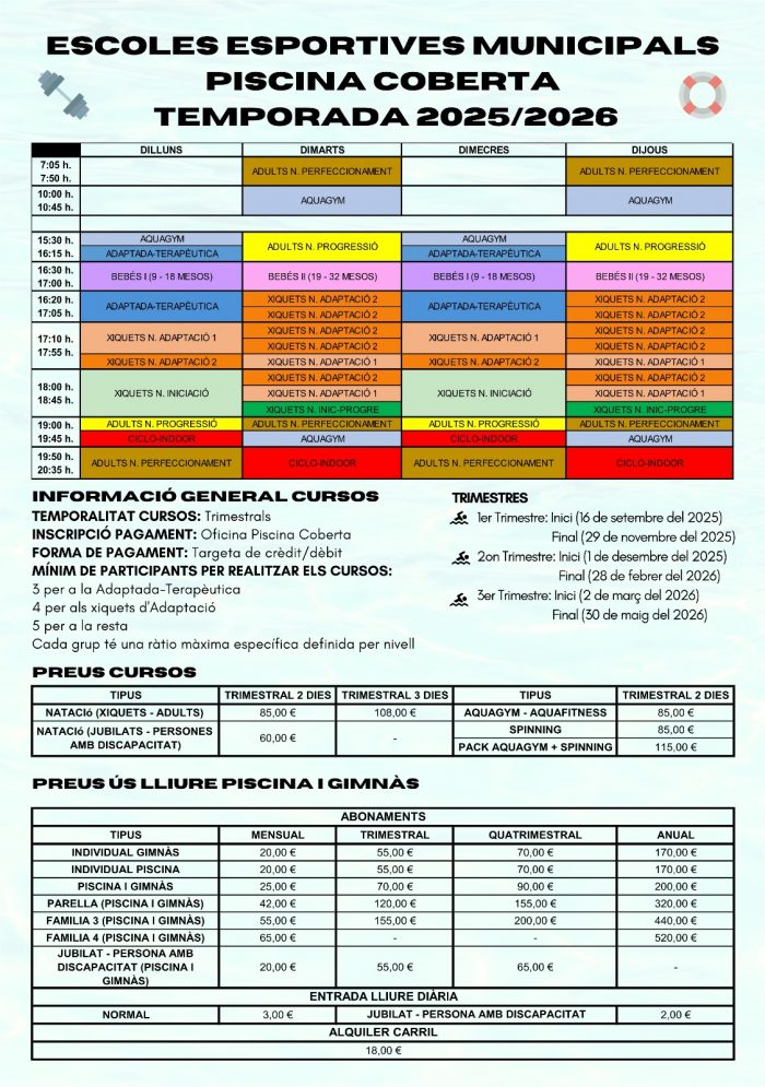 Els cursos de natació i cicloindoor seguiran sent trimestrals: