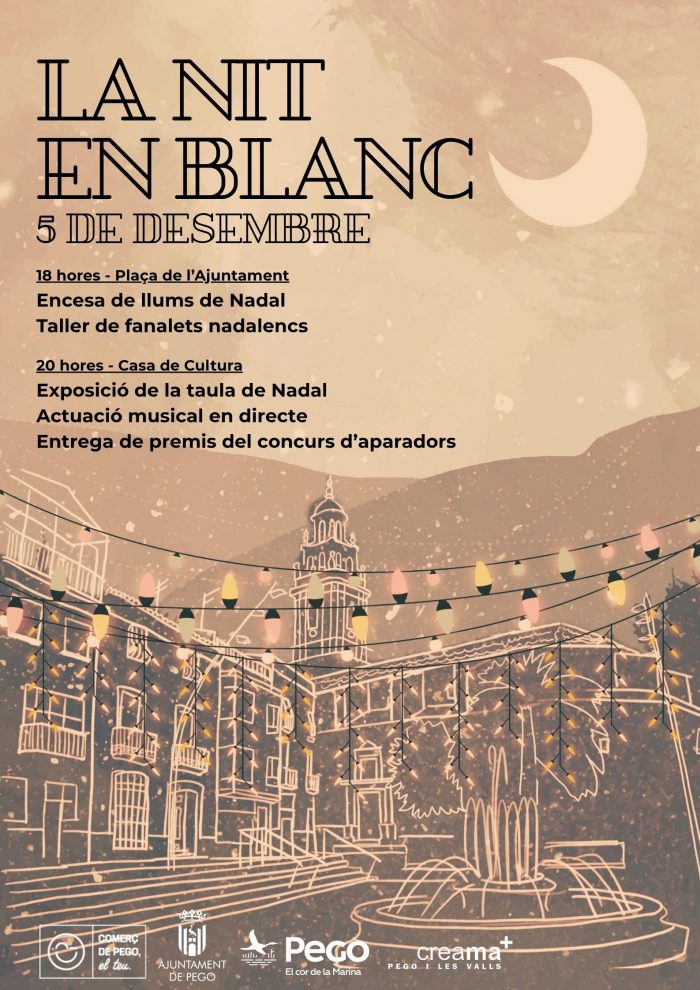 Un any més Pego iniciarà el mes de desembre amb la celebració de la Nit en Blanc, el primer símptoma que l’esperit nadalenc està molt a la vora. El comerç de Pego i els veïns i veïnes tornaran a estrényer relacions per a celebrar una cita marcada en el calendari des de fa ja uns anys. Una iniciativa que va nàixer, fruit del treball entre la regidoria de Promoció Econòmica-Creama, el propi departament de Creama i l’Associació de Comerciants i Professionals de Pego, i a la qual se sumen enguany els departaments de Festes i Joventut.