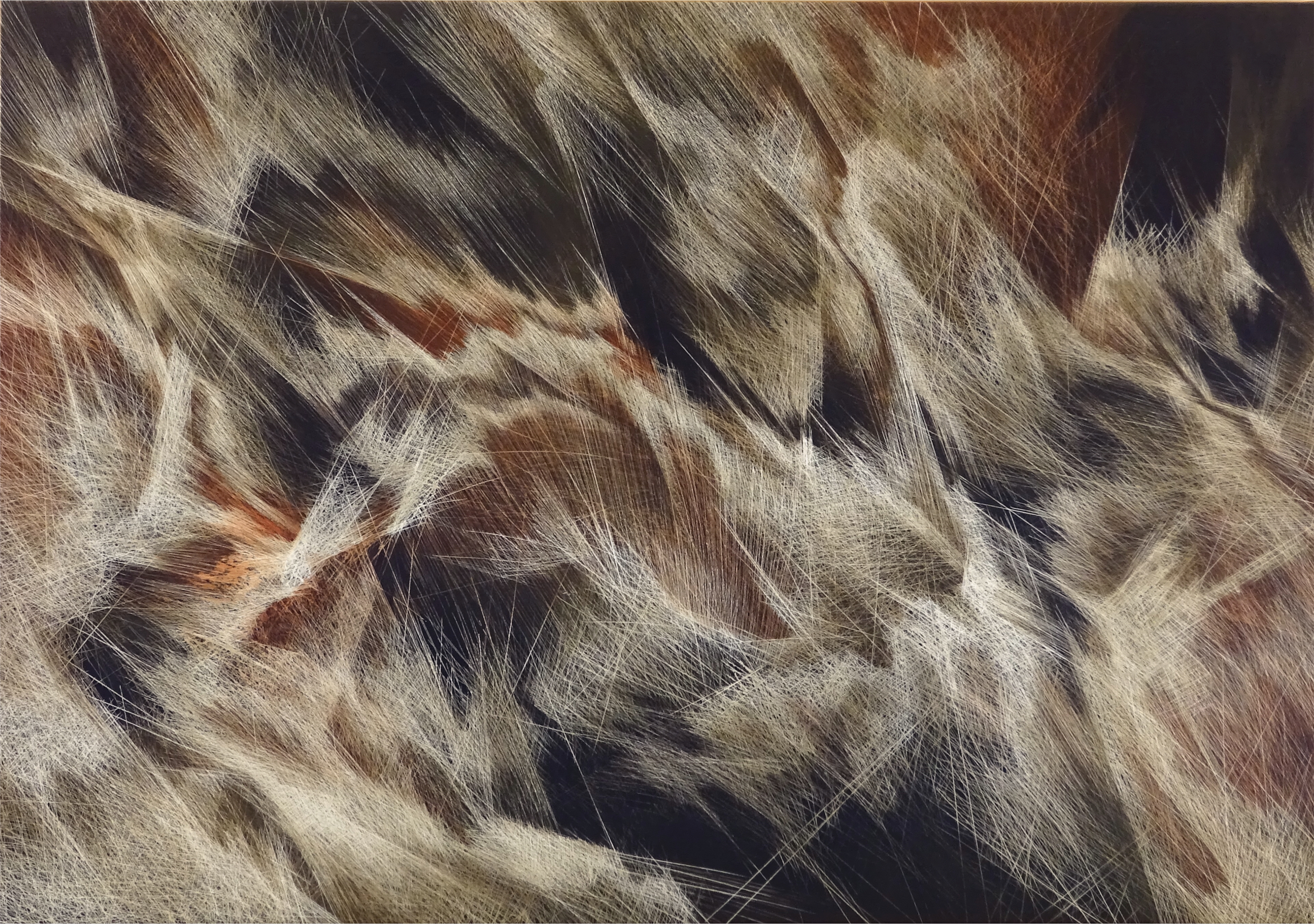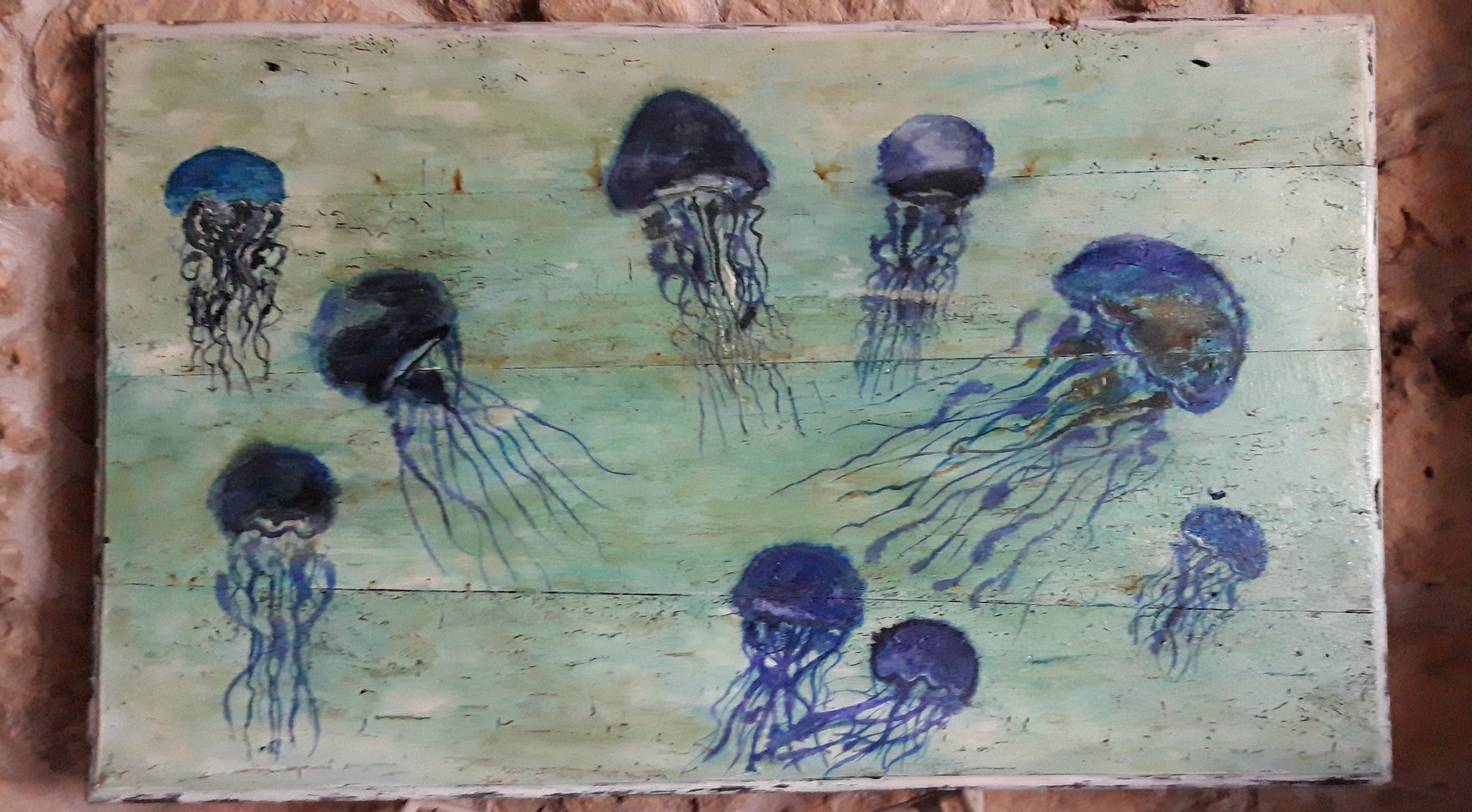 Mixta sobre fusta reciclada amb pigments naturals tals com el sulfat de ferro, iode, cúrcuma i terres naturals.